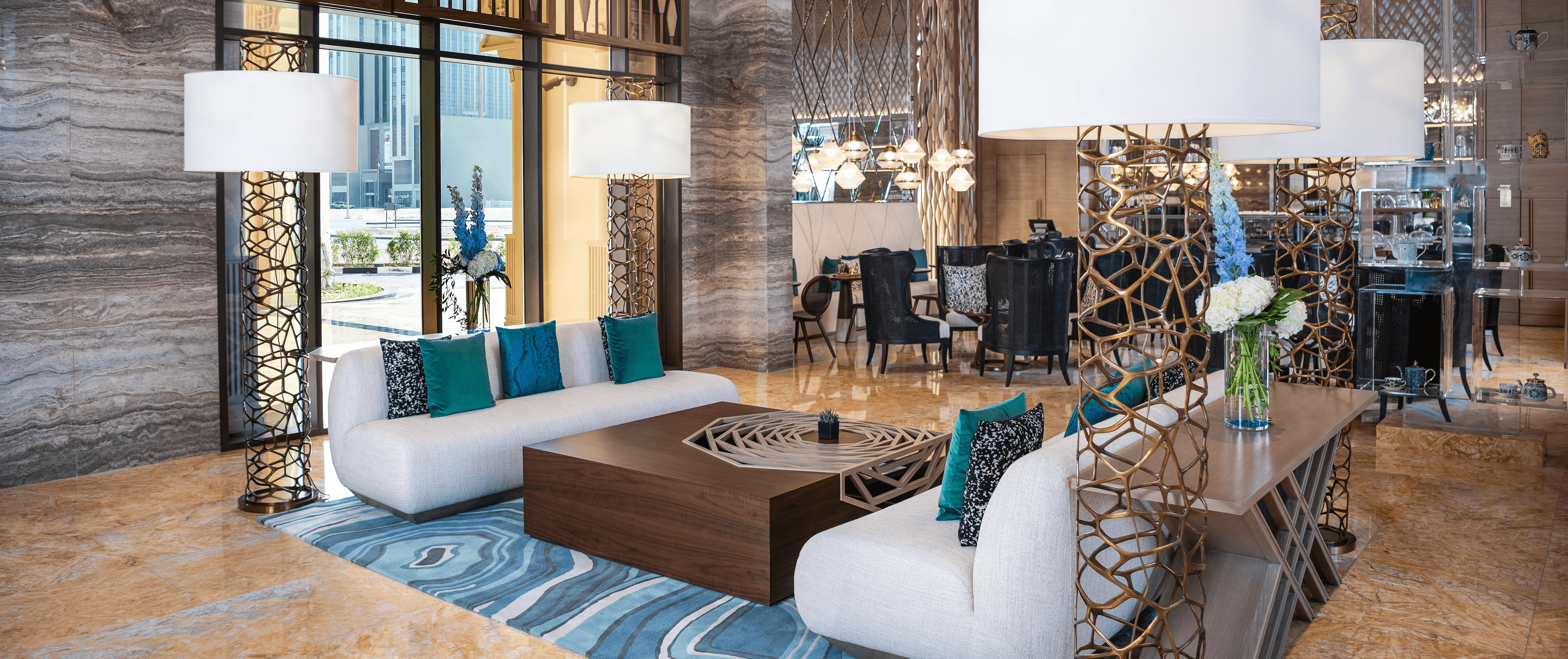 A serene lounge infused with soft light and understated elegance. It is the place for an afternoon pause. Fresh pastries. Signature teas. Conversations that unfold gently. It is a corner of calm in a fast paced city.